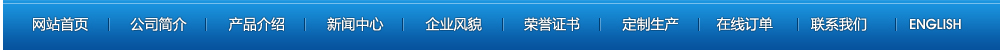 網(wǎng)站首頁 | 公司簡介 | 產(chǎn)品介紹 | 新聞中心 | 企業(yè)風(fēng)貌 | 榮譽(yù)證書 | 定制產(chǎn)品 | 在線訂單 | 聯(lián)系我們 | ENGLISH 【后臺(tái)管理】
